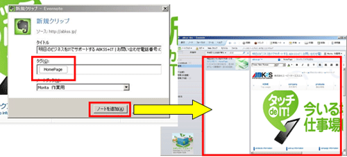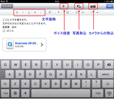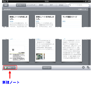 ■iPadで、Evernoteに新規に情報を登録する。(「ノート」を作成する。)