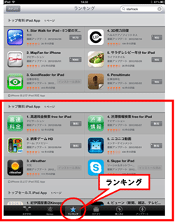 A'App store'の下側にあるランキング(☆マーク)をタップするとよく使われるアプリケーションが表示されます。 |